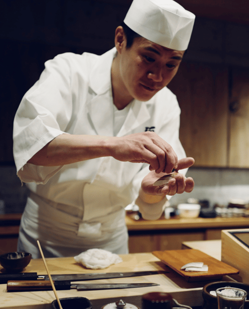 Akihito Yakimoto’s culinary career started at age 6, as he helped out in the family inn’s restaurant. Over the years, he traveled across the Chiba prefecture to hone his skills as a sushi chef. Eventually, he took over a downtown sushi restaurant in Tokyo, which quickly rose to fame and was featured in all of the Japanese culinary magazines.